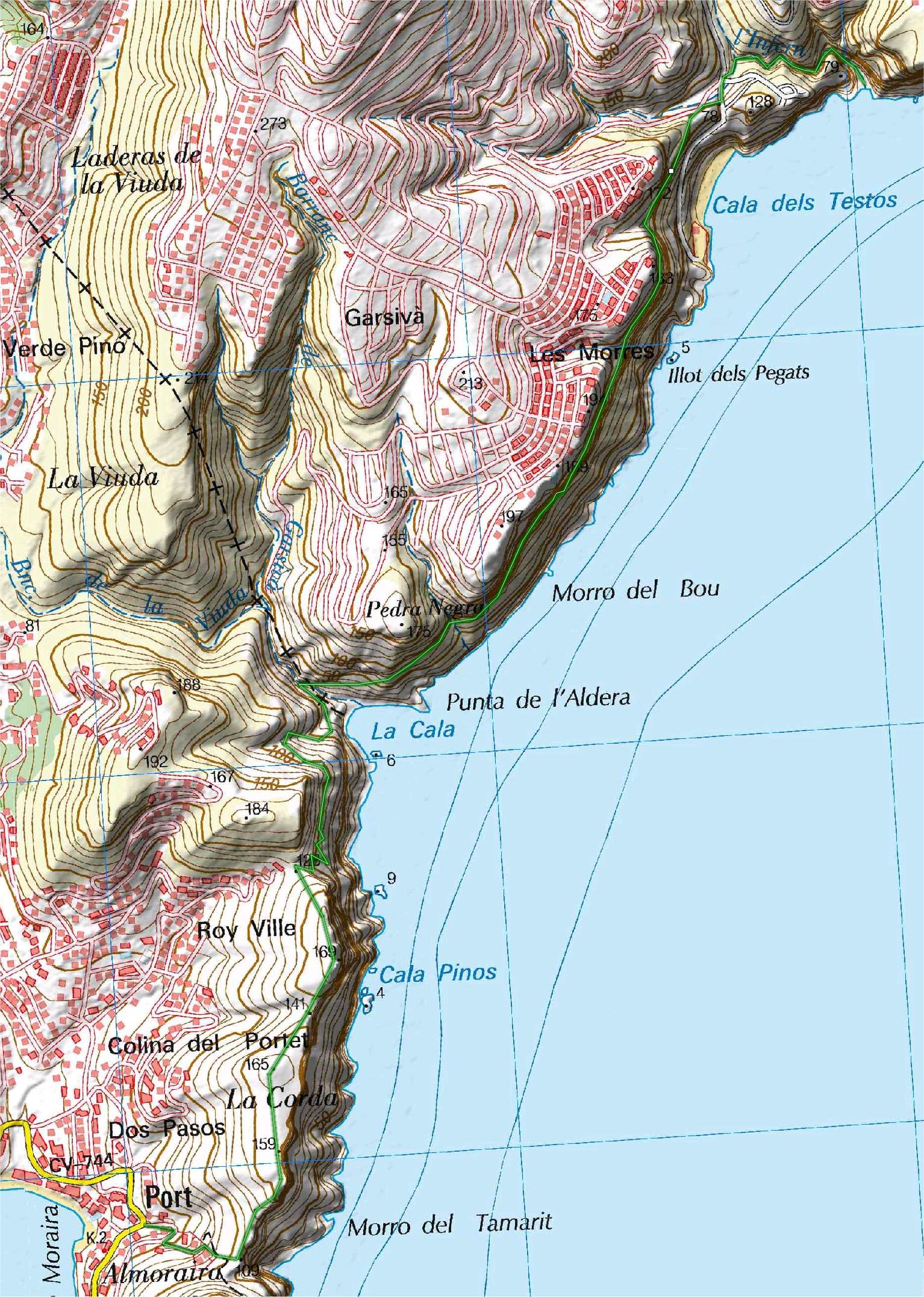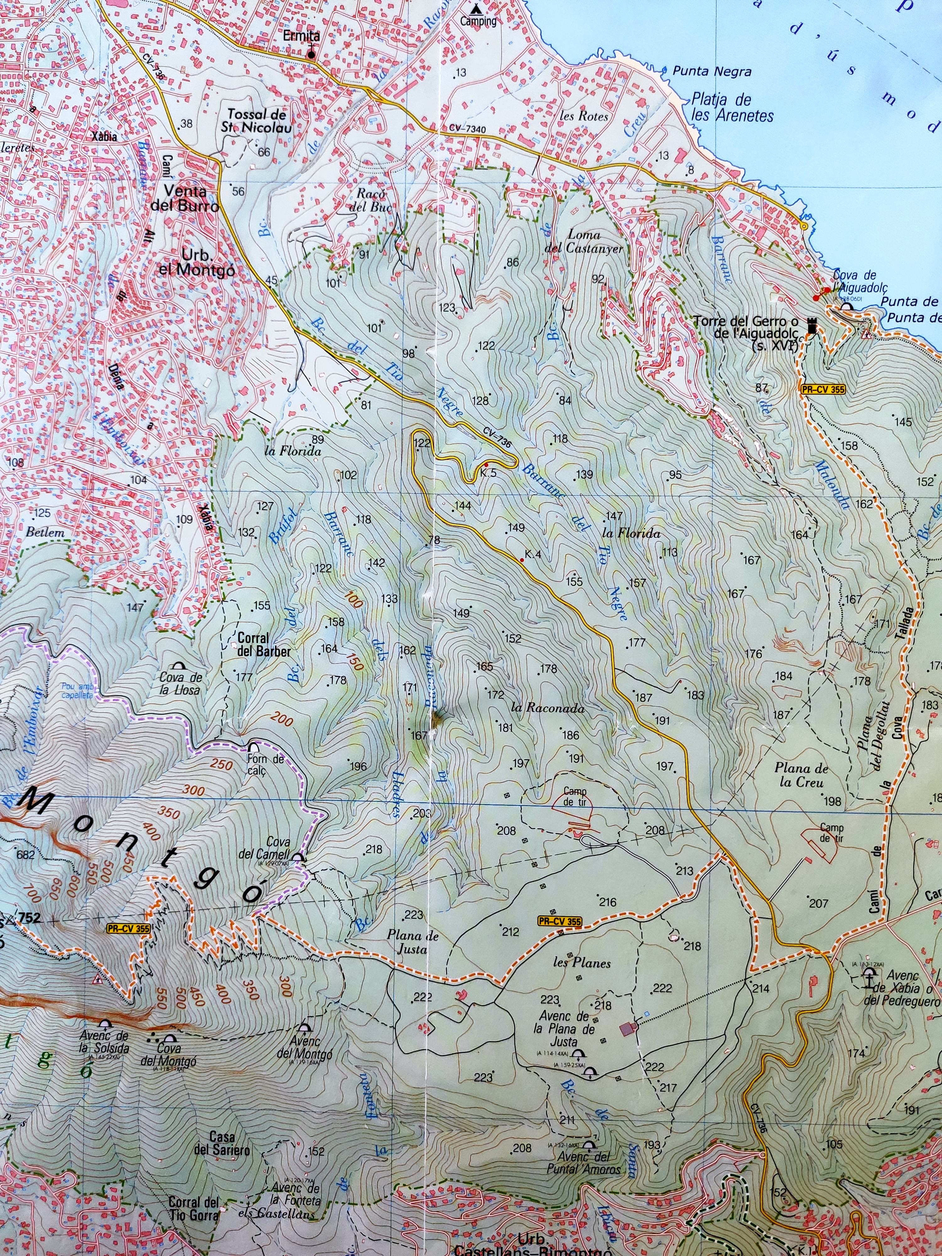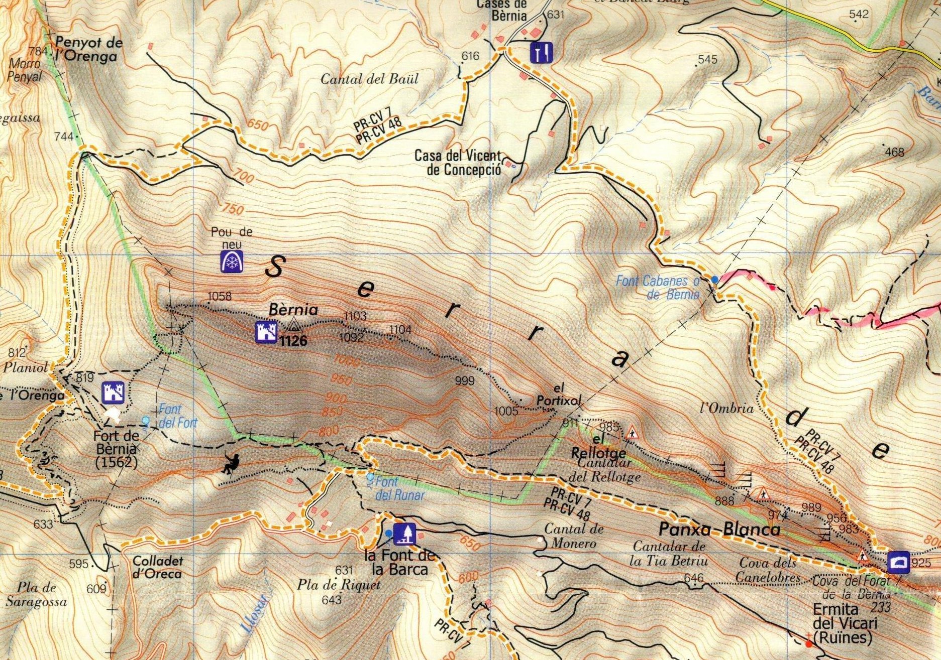 Mapa muy detallado a gran escala de la sierra de Bernia.